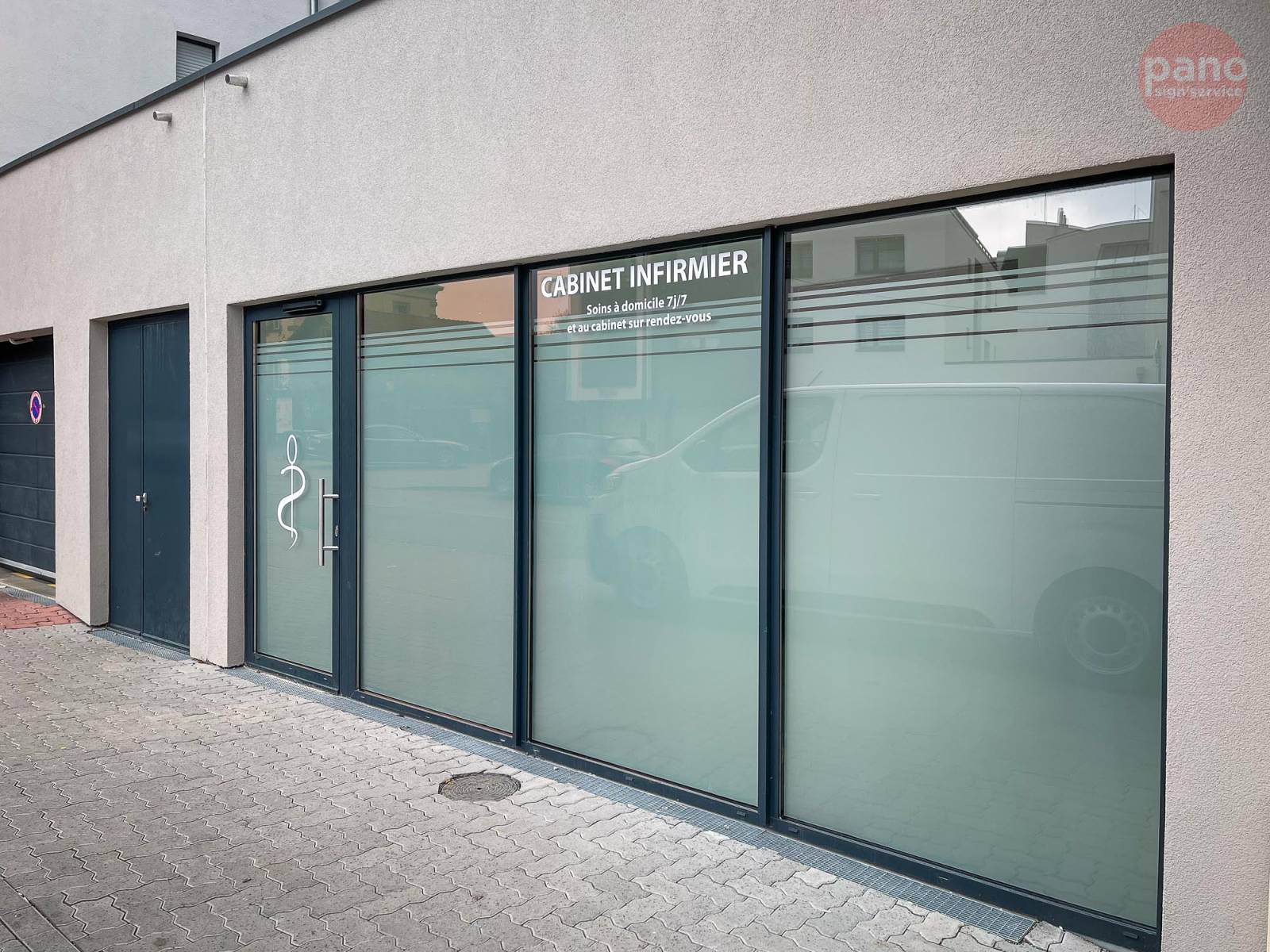 Pour leur cabinet infirmier, Laura Hugoud et Yannig Piriou ont choisi de poser du vinyle dépoli.
